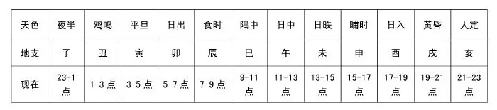 古人還用十二地支記時(shí),一個(gè)時(shí)辰等于兩個(gè)小時(shí),半個(gè)時(shí)辰等于一個(gè)小時(shí),每個(gè)時(shí)辰還有俗稱還有對應(yīng)的時(shí)間,如下圖: